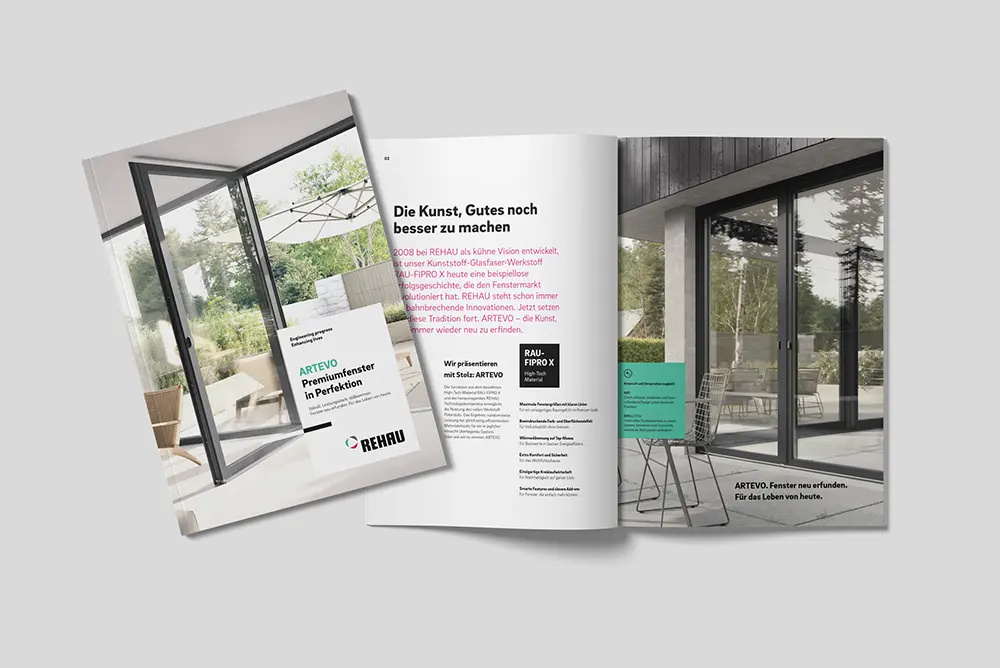 Die von Lingner Marketing hochwertig gestaltete Broschüre unterstreicht die Positionierung von ARTEVO als Premiumsystem.