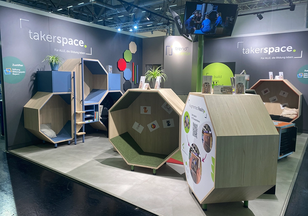FÜRTH, Juni 2024 – Hinter dem Schulmöbelkonzept takerspace des Innenausbau-Spezialisten trend interior aus Greding verbergen sich mehr als nur Möbel. Vielmehr geht es darum, mit funktionalem Design Lernumgebungen zu schaffen, die eine verbesserte Lernkultur fördern. Der Ansatz dahinter: Die Pädagogik bestimmt das Design des Möbels, nicht das Möbel die Pädagogik. So entwickelte das Unternehmen wabenförmige Module in verschiedenen Größen, die flexibel angeordnet werden können und maximale Flexibilität bieten.
