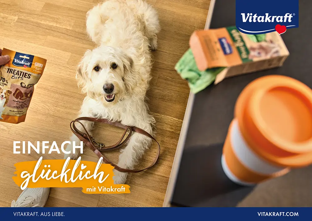 Die gesamte Kampagne wird geprägt von der First Person View und versetzt die Betrachtenden direkt in die Rolle des jeweiligen Haustierbesitzers. Die Zielgruppe findet sich in verschiedenen Alltagsituationen mit ihren tierischen Lieblingen wieder und erlebt dabei Vitakraft als tagtäglichen Begleiter, der das Miteinander bereichert und die Verbindung stärkt. Die Glücksmomente, die daraus resultieren, werden aktiv erlebt und bündeln sich in dem neuen Claim „Einfach glücklich mit Vitakraft“.