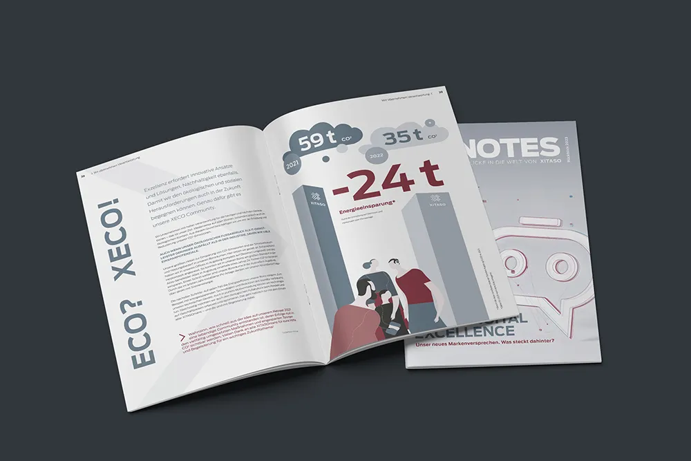 Den Startschuss für das Projekt markierte ein gemeinsamer Content-Workshop, bei dem sowohl die Themen als auch das grundlegende Layout definiert wurden. Auf dieser Basis entstand ein 60 Seiten starkes Heft, das Lingner Marketing sowohl inhaltlich als auch gestalterisch ausarbeitete. Die Herausforderung bei der Texterstellung bestand darin, einerseits die Mitarbeitenden, die sogenannten XITASOnians, und anderseits die Kunden anzusprechen. Dies gelingt durch einen geschickten Mix an internen und externen Themen, die die Entwicklung des Unternehmens im Jahr 2023 abbilden.