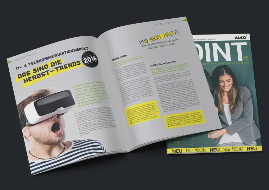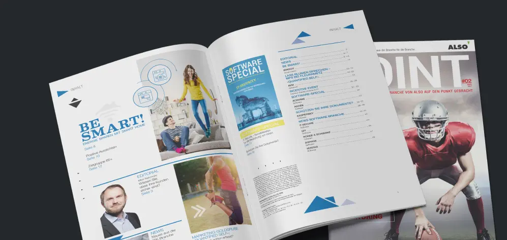Gemeinsam mit uns lancierte der IT-Distributor ALSO im Jahr 2016 sein Kundenmagazin „ALSO POINT“, ein hochwertiges redaktionelles Format, das fundierte Hintergrundberichte, Expertenwissen und spannende Einblicke in aktuelle Trends und Technologien bietet.