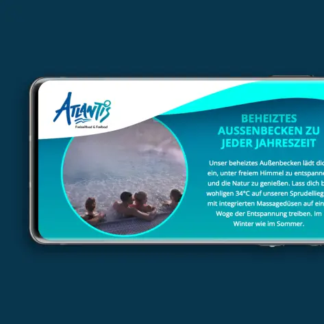 Für das Freizeit- und Erlebnisbad Atlantis in Herzogenaurach – und das dazugehörige Freibad – setzen wir einen kompletten Website Relaunch um. Das Look & Feel wurde modernisiert und passend zu einem Erlebnisbad aufgepeppt. Von der Texterstellung, über das Screendesign, bis hin zur Entwicklung in Wordpress, betreuten wir das Projekt ganzheitlich.